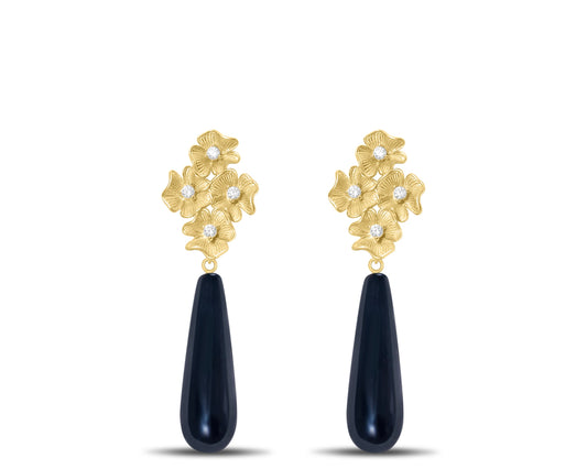 Cubic zirconia flowers with black onyx drop earrings